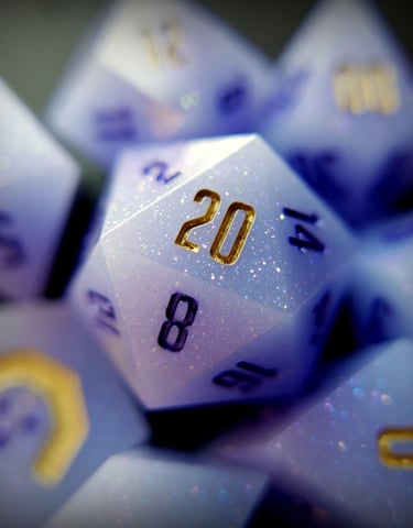 Découvrez l'univers magique des dés artisanaux faits main, conçus avec passion pour les amateurs de jeux de rôles et les collectionneurs. Chaque pièce est unique et pleine de caractère !